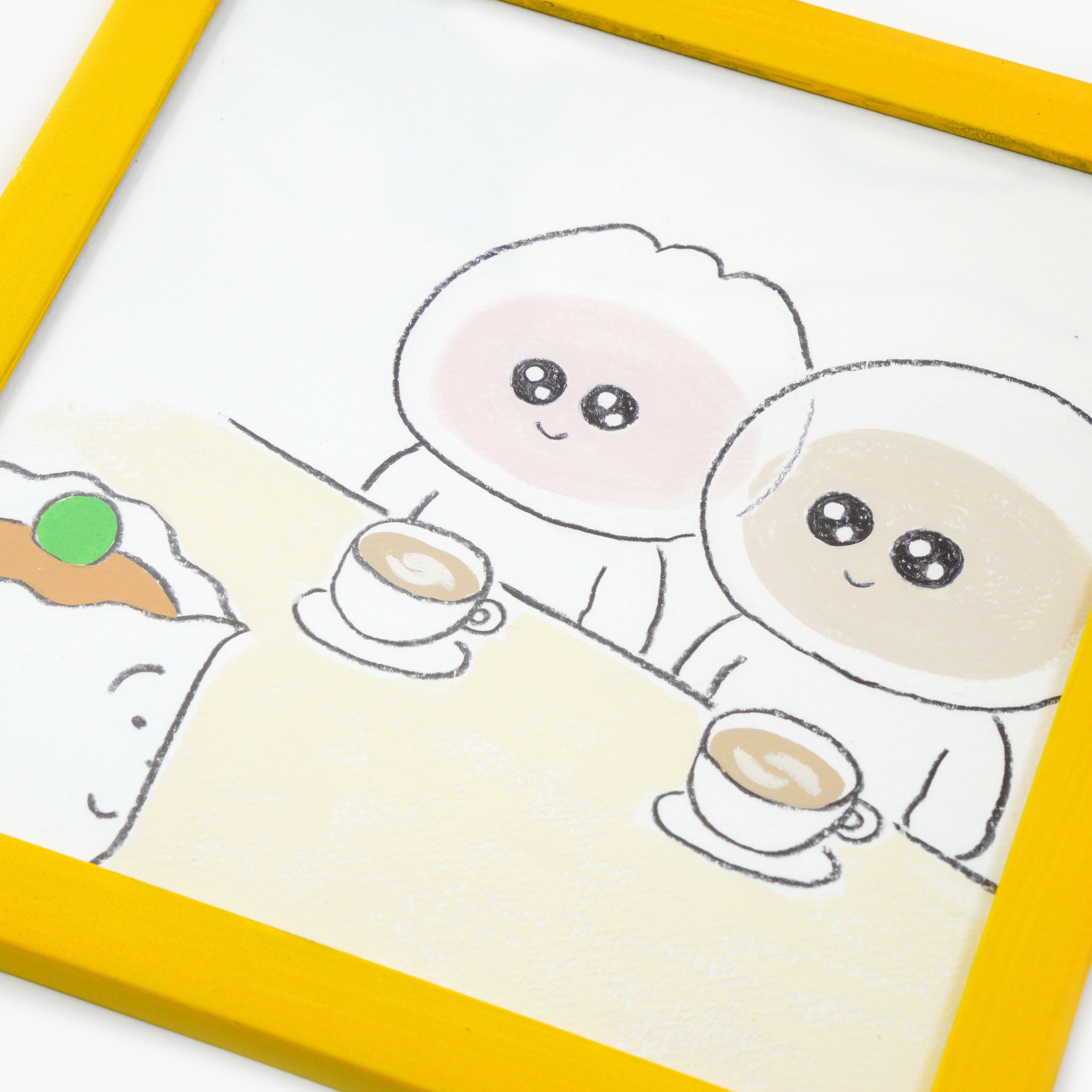 黄色の額縁付きなのでそのまま飾ることができます。
